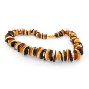 Amber Necklace Disc Shaped Beads Rainbow is handmade from Natural Baltic Amber.