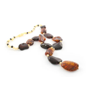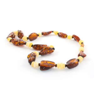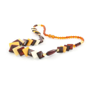 Amber Necklace Squares and Cognac Balls Mix is handmade from Natural Baltic Amber.