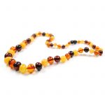 Amber Necklace baroque is handmade from Natural Baltic Amber. The amber stone colors mixed with yellow polished/unpolished stones and cognac color stones, round beads.