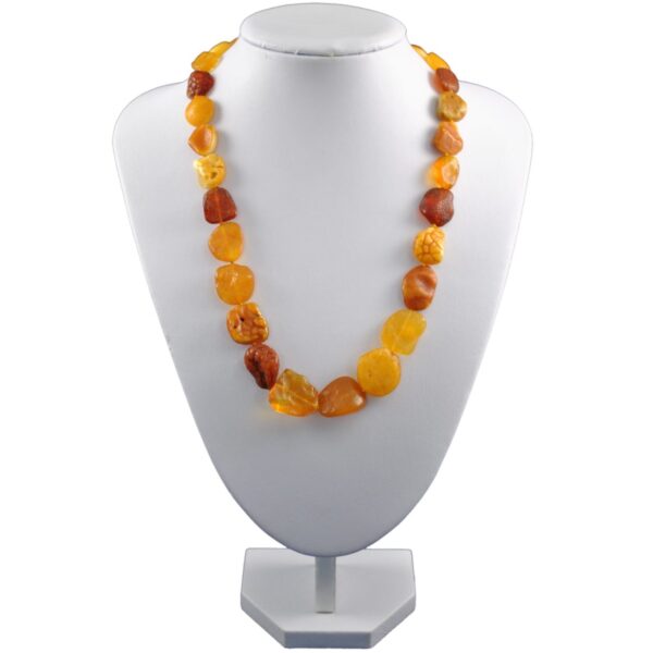 Amber Necklace baroque is handmade from Natural Baltic Amber. The amber stone colors mixed with yellow polished/unpolished stones and cognac color stones, round beads.