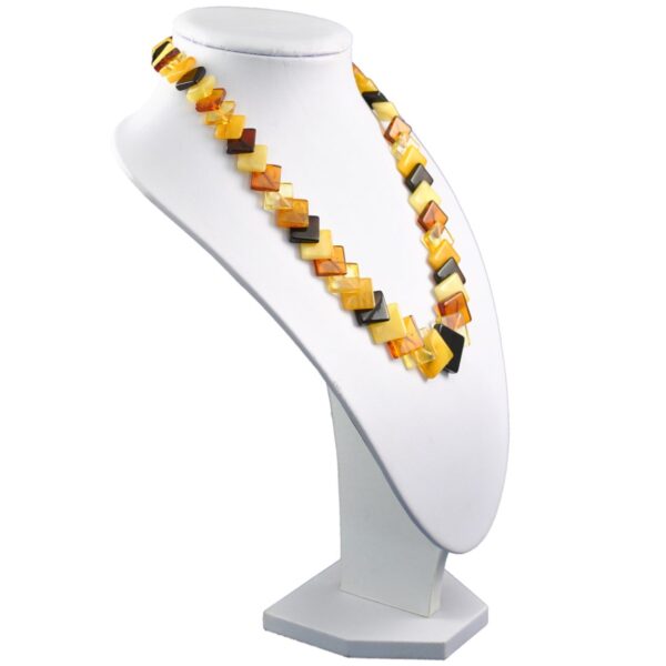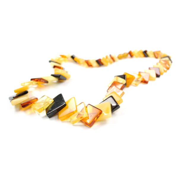 Amber Necklace Squares Mix is handmade from Natural Baltic Amber. The amber stone color mixed cognac, yellow, dark brown.